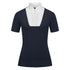 Breeze through competition days in comfort and style with this elegant short-sleeved show shirt. Made from breathable technical fabric with a tailored fit, it offers performance-ready stretch and all-day comfort. The stand-up collar with seamless zip adds a sleek finish, while the front insert is subtly embellished with decorative rhinestones for a refined sparkle. Finished with a glittering E·L·T logo print on the collar and back for that extra touch of polish.