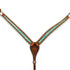 Ezy Ride leather breastplate, backstitched with turquoise croc inlay. Stainless steel fittings and copper coloured buckles. Clip for girth. Harness leather.