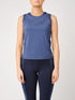 Sleeveless top in a soft and technical jersey. Repeat logo print tape running along side seams which are moved towards the front. Wide crew neck