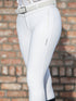 The full seat grip gives not only a good grip, but also a beautiful silhouette. The back pocket imitations are strategically placed to not scratch the saddle. The breeches are elastic at the ankles.