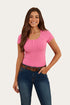 Our Arabella ribbed t-shirt is a stylish and functional piece of clothing that offers a contoured, yet comfortable fit all day long. This t-shirt is made from a two-way stretch cotton blend which offers a soft feel against the skin and is breathable and non-restrictive. Arabella features a three-button centre-front packet which can be worn fastened or left open, a small Ringers Western embroidered bull on the front chest and a branded metal badge on the back neck.