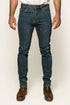 Introducing the Austin Men’s Slim Fit Jeans, our slimmest fit yet, crafted to deliver a streamlined silhouette. These jeans taper from the hip to the ankle, offering a snug fit that’s not as tight as skinny jeans but with less room than a straight-leg cut. With a mid-rise waist that sits comfortably at the midsection, these jeans rest just below the belly button for a clean, tailored look. Made from a durable cotton and elastane blend, the Austin jeans provide the ideal mix of comfort and flexibility—perfect for a day in the saddle or a night on the honky-tonk floor. Featuring a traditional five-pocket design and antique brass trim details, these men's jeans balance refinement with ruggedness, making them a versatile addition to any wardrobe.
