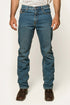 Constructed from 100% cotton rigid denim, these men's jeans offer a classic, structured feel that softens and molds with wear, fading at natural points for a look that reflects your lifestyle. The mid-rise waist fits perfectly between high and low, while the slim profile contours through the hip and thigh without sacrificing movement. With a stackable leg, they're ideal for pairing with boots and working hard wherever you go.