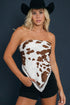 The Daisy scarf - a frontier-inspired accessory in our Broken Hearts Club capsule. Crafted with the spirit of the West in mind, this scarf features a captivating cowhide print that echoes rugged charm. The neutral tones make it a versatile accessory that effortlessly complements many different outfits. With multiple wear options, this scarf very quickly becomes an essential piece in every cowgirls wardrobe. Whether worn as a tie-up top with a pair of Bowie Flare jeans, a statement hair piece or as a traditional neck scarf, the Daisy is the perfect companion to any outfit.