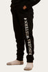 The Durango trackpant, the perfect all-rounder for your off-duty wardrobe. Made from a heavenly blend of breathable cotton and cozy polyester, these track pants offer a soft feel against the skin. The relaxed fit ensures unrestricted movement, making them your go-to choice for a day of lounging. The elasticated waistband and drawstring provide a customisable fit. The Durango features a Ringers Western printed logo down the little tackers leg as well as subtly branded metal hardware.