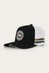Crafted with a cotton twill front panel and a breathable mesh back, this kids trucker cap keeps little heads cool and comfortable under the sun. The embroidered Ringers Western logo patch on the front panel captures the brand's rugged heritage, while twin side stripes add a fun design element. With an adjustable plastic snap closure, this cap grows with them, making it a versatile and reliable choice for parents who want durability in their kids' country trucker caps.