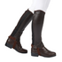 A pair of black leather half chaps for equestrian riding, featuring elastic stretch panels and a back zipper with a Dublin snap closure.