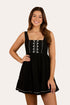 Created from a premium cotton and linen blend, the Westley dress will keep you cool and comfortable on the warmest of days. This playful mini features a shirred back panel and adjustable shoulder straps, both details allowing for a secure and customisable fit. The combination of the mini length and frill hemline add a fun and playful feel to this delightful dress, perfect for casual summer days spent chilling with friends. Feature applique embroidery provides just enough country charm to make the Westley every country girls favourite black mini.